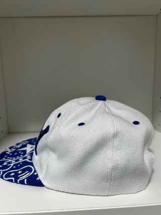 Gorra estilo trucker con el diseño Thinking Cap de Stranger Things. - Parte frontal blanca con el logo. - Malla lateral y trasera en color azul. - Visera y detalle frontal en color azul claro. - Cordón rojo decorativo sobre la visera.