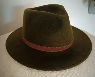 Sombrero de lana 100% de la marca Curzon Classics. Indeformable. Adorno de cinta de cuero auténtico con hebilla. SIN ESTRENAR. - Talla 59. (L) - Color verde oliva y marrón.