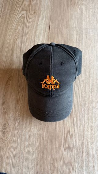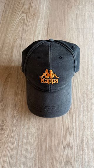 Gorra de la marca Kappa en color negro con el icónico logo bordado en naranja. - Diseño clásico de béisbol. - Logo Kappa bordado en la parte frontal.