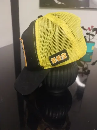 Gorra de estilo trucker con diseño de Goku. - Parche bordado de Goku. - Malla trasera para ventilación.