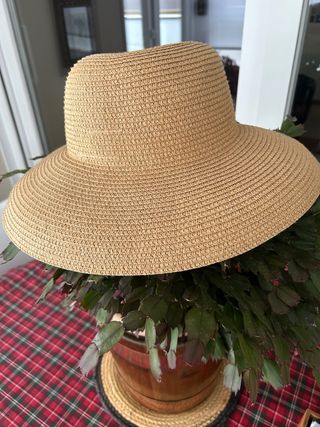 Sombrero de paja estilo Pamela, perfecto para protegerse del sol con elegancia. - Material de paja tejido. - Ala ancha para mayor cobertura. - Diseño clásico y versátil.