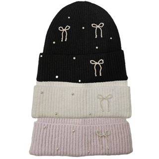 Conjunto de tres gorros estilo coquette, perfectos para añadir un toque dulce a tu look. - Diseño con perlas y detalles de lazo de inspiracion. - Tejido suave y cómodo. - Incluye gorros en negro, blanco y rosa. - Ideal para despedidas de soltera, fiestas, regalos de empresa o tiendas. ¡Precio especial por lotes grandes! Gorro perlas, beanie lazos, coquette style, gorro mujer, lana, regalo chica, lote 3 unidades, accesorios invierno, aesthetic, rosa pastel, moda coreana, nuevo con etiquetas, merchandising. - Entrega fisica en mostoles 28938 - Envío Rápido: 🇪🇸 España: 48-72h. 🇮🇹 Italia y 🇵🇹 Portugal: 3-4 días laborables.