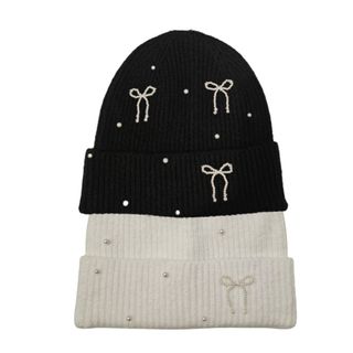 Pack 2 Gorros Beanie Coquette con Perlas. Nuevo