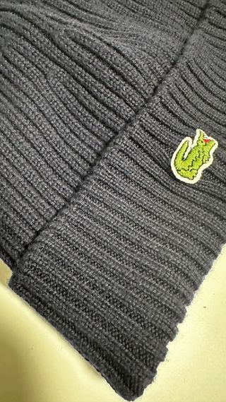 Gorro de punto de la marca Lacoste. - Diseño de canalé. - Logo del cocodrilo bordado. - Precio original 55€ - Regalo de cumpleaños que no me gusto.