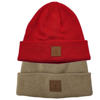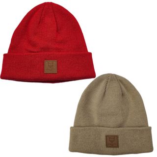 Lote 2 Gorros Beanie Unisex Rojo y Beige