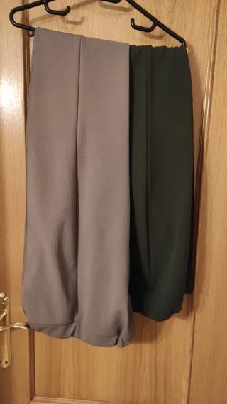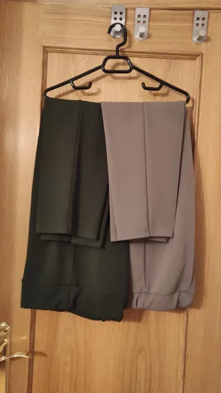 Conjunto de dos pantalones para señora. - Cintura elástica. - Talla 50-52 - Un pantalón de color beige. - Un pantalón de color verde. Hago envíos por Correos Grado Asturias