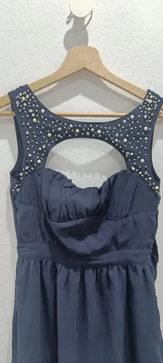 Vestido juvenil de color azulón, ideal para cualquier ocasión. Largo maxi - Diseño con escote en V. - Cintura marcada con falda fruncida. - Tejido ligero y fluido. Hago envíos por Correos Grado Asturias