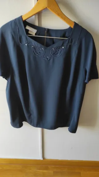 Elegante camiseta de vestir para señora con un diseño sofisticado. -Cuello en V con detalle de lunares. - Lazada frontal. - Puños con estampado de lunares. Hago envíos por Correos Grado Asturias