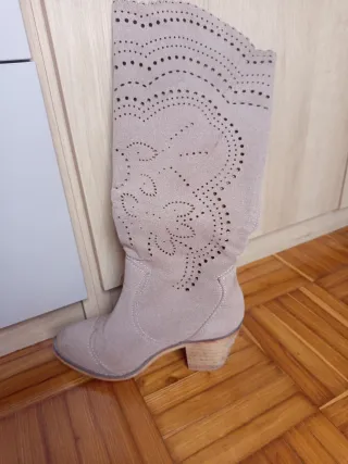 Botas altas de estilo moderno. - Diseño con perforaciones decorativas. - Acabado en ante. - Punta con detalle de picado.