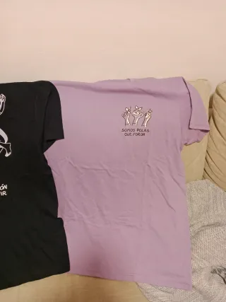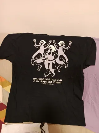Camisetas conmemorativas del Día das Letras Galegas 2025. Diseños únicos para celebrar la cultura gallega. - Ilustración con manos y flores. - Mensaje Somos polas que foron. - Disponible en negro y morado.
