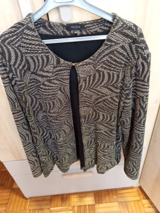 Cárdigan de punto con un diseño elegante y llamativo. Está nuevo,no se llegó a poner - Estampado de encaje en blanco y negro. - Detalle de grecas en el lateral.
