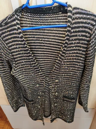 Chaqueta con un diseño llamativo y elegante. - Tejido con hilos dorados brillantes. - Patrón texturizado único.