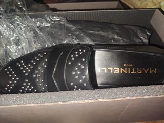 Elegantes zapatos para mujer de la marca Martineli. - Color negro. - Diseño con tachuelas plateadas. - Detalle de tira en la pala. - Logo de la marca en la plantilla.