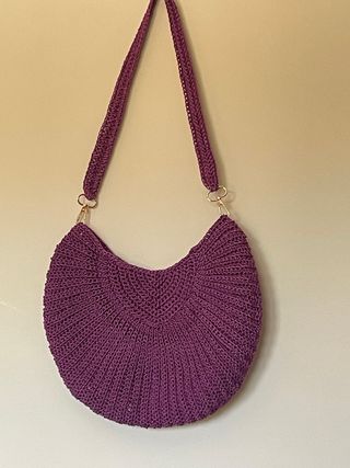 Bolso de mano tejido a crochet con un diseño único. - Elaborado a mano. - Forma de abanico. - Asa larga para llevar al hombro. Mide 70 cm Forrado por dentro