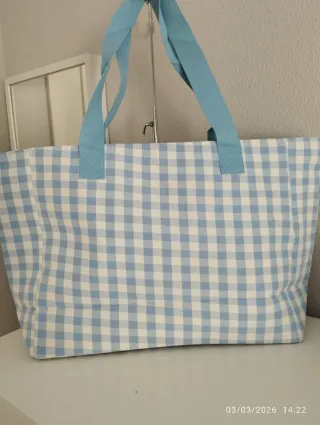 Bolso Tote Cuadros Azul y Blanco