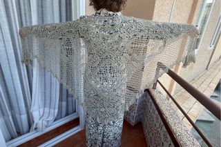 Chal crochet beige y plateado hecho a mano