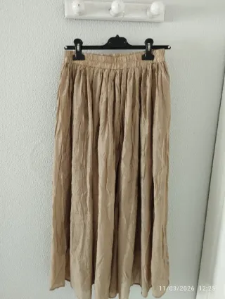 Falda larga de color beige, con etiqueta. - Diseño plisado. - Cintura elástica.