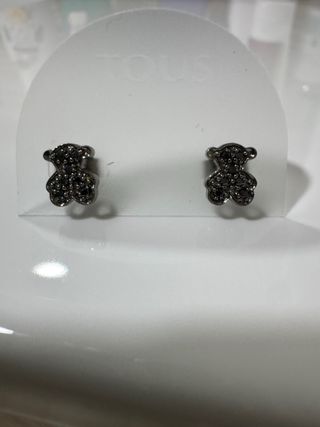 Pendientes Tous Oso Oro Blanco y Brillantes Negros