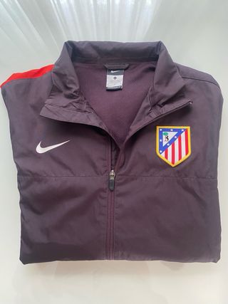 Sudadera del Atlético de Madrid de la temporada 2012-13. - Diseño con escudo del club. - Cierre de cremallera frontal. - Detalles en color rojo en los hombros.