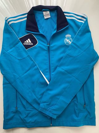 Chaqueta deportiva del Real Madrid de la temporada 2012-13. - Diseño con las icónicas tres rayas de Adidas. - Escudo del Real Madrid bordado. - Cierre completo con cremallera.