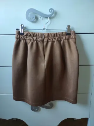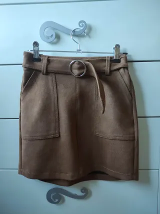 Falda marrón efecto ante Bershka talla XS Cierre cremallera en parte trasera con goma elástica. Trabillas parte delantera tipo cinturón y bolsillos. En perfecto estado, como nueva.