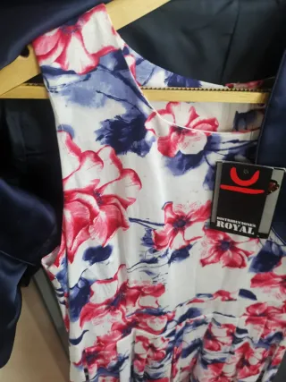 Conjunto de vestido y chaquetilla de la marca Royal. - Vestido con estampado floral. - Chaquetilla a juego.