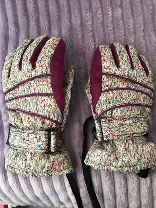Guantes de esquí para mantener tus manos abrigadas en la nieve. -Niño de 12 o 13 años. - Diseño acolchado. - Puño elástico. - Cierre de velcro.