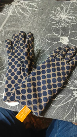Guantes de la marca Santacana con un diseño de lunares. - Diseño de lunares en azul y beige. - Tejido cómodo y flexible.