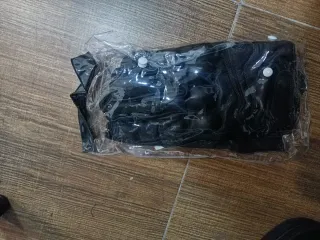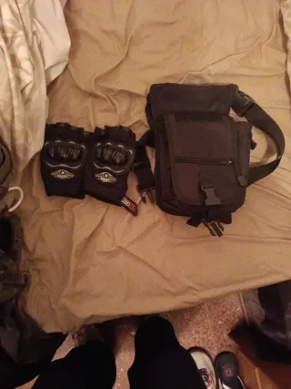 Conjunto de ropa vaquera y guantes negros. - Pantalones vaqueros de color azul. - Guantes negros de material resistente.