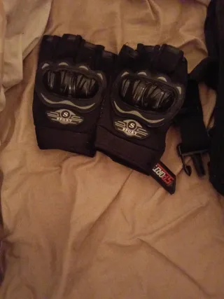Conjunto de riñonera de pierna y guantes con protección. - Riñonera de pierna con múltiples compartimentos. - Guantes con protecciones en nudillos y palma.