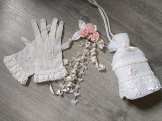 conjunto de guantes, limosnera y corona para comunión. en muy buen estado