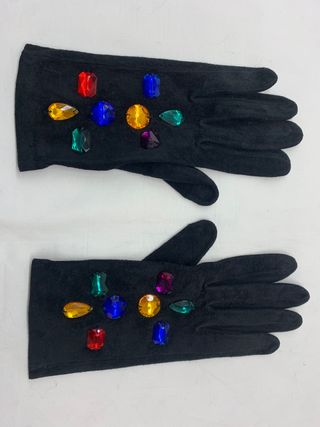 Guantes negros de ante talla 7 1/2 con aplicaciones decorativas