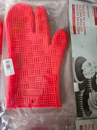 Molde de silicona con forma de guante, ideal para repostería. - Material: Silicona. - Color: Rojo. Producto para alimentos garantizando. Ideal para cocinar al horno tradicional y microondas. Antiadherente y fácilmente lavable con agua caliente. Precio por unidad.