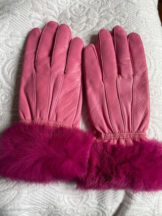 Elegantes guantes de cuero en un llamativo tono rosa, perfectos para añadir un toque de estilo. - Material exterior: cuero. - Adorno de pelo en el puño.