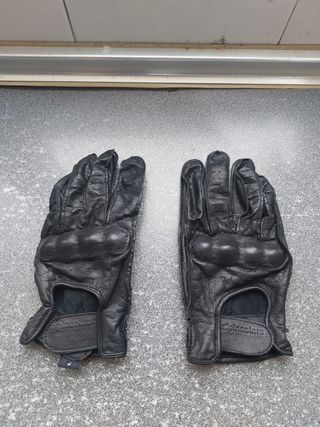 Se venden guantes de cuero de moto, son talla XL, la anchura de la mano debe ser entre 9,5 y 10,5 cms. Estan totalmente nuevos, sin ningun uso, excluido el probármelos.