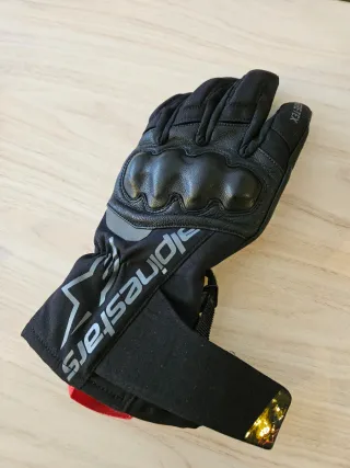 Guantes de moto Alpinestars con tecnología Gore-Tex. - Color principal negro con detalles en gris. - talla M justa o S amplios - Cierre ajustable en la muñeca. - Diseño ergonómico para mayor comodidad.