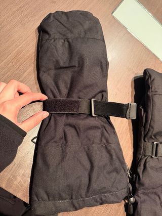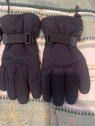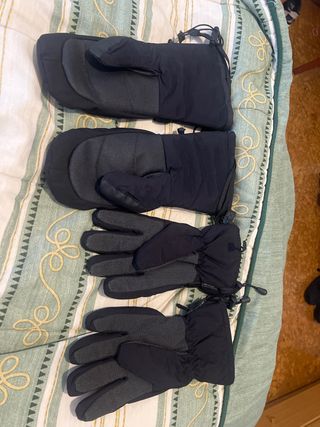 Conjunto de guantes y manoplas para proteger del frío en la nieve. - Incluye dos pares de manoplas. - Incluye dos pares de guantes. - Cierre ajustable en la muñeca.
