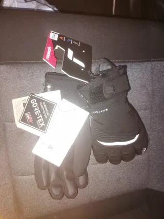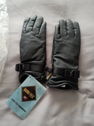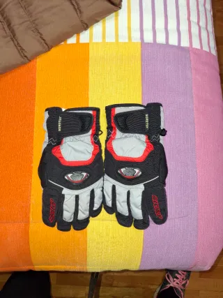 Guantes de invierno GoreTex, para moto o nieve. Talla L Largos para dejar la manga dentro las cuales llevan protecciones de muñeca, lo cual hace que sigas calentito y protegido El diseño es chulísimo aún más en persona, pero me quedan grandes porque uso la M Los guantes se han usado 2 veces o puede que incluso 3... Son de mi padre y ya no coge la moto... No tienen desgaste ni rasguños, los velcros están en perfecto estado, las puntas de los dedos, las protecciones, TODOOO