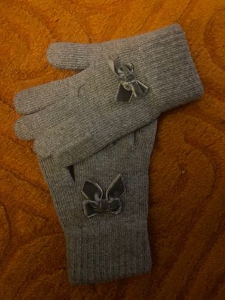 Guantes lana niña lacito color gris hasta 8-10 año