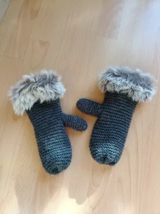 Par de manoplas de lana tejida a mano, con un suave detalle de pelo en el borde. - Diseño tejido. - Adorno de pelo sintético. - Interior con forro polar