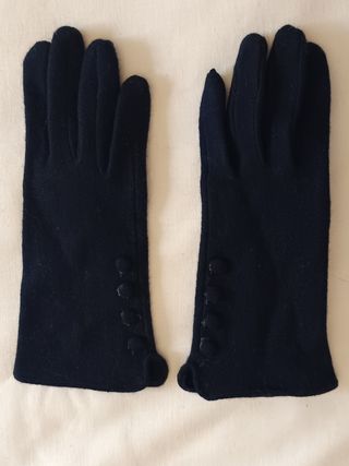 Guantes azul marino de lana, poliamida, angora, cashmire y mohair. Llevan unos botoncitos adornando la muñeca. Ver imágenes. Sin estrenar.