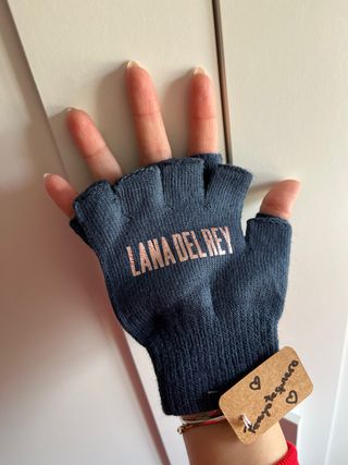 Guantes color celeste sin dedos con el logo de Lana del Rey en rosa Talla unica Unisex mujer y hombre DISPONIBLE SOLO PARA ENVIOS ENVIOS EN 24 horas