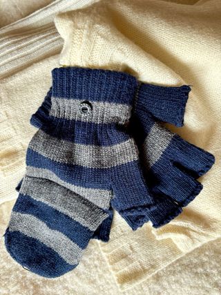 Dos pares de mitones de lana pura, fabricados en Austria. - Composición: 65% lana. - Diseño a rayas. Color azul/gris. Y gris claro/ gris oscuro SIN ESTRENAR PRECIO POR UNIDAD