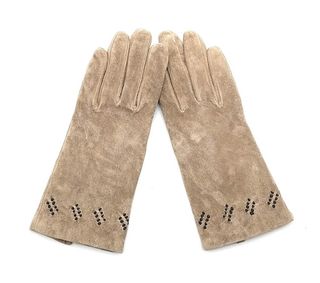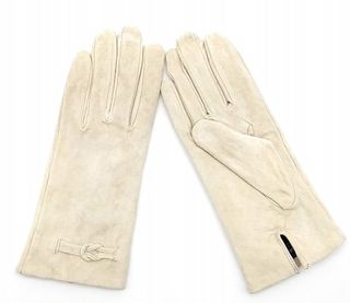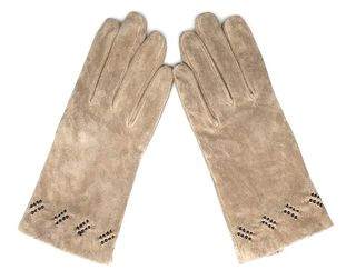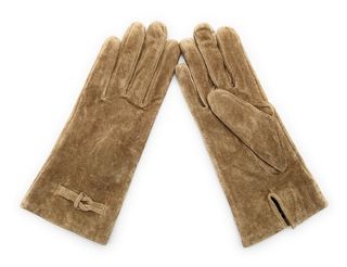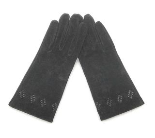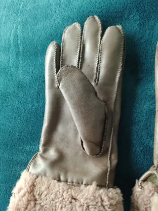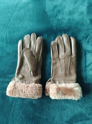 Elegantes guantes de mujer con un suave forro interior. - Material exterior tipo ante. - Detalle de borrego en el puño.