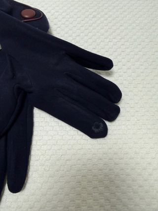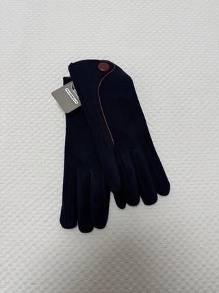 Elegantes guantes de mujer de la marca ANGELA. - Color azul marino. - Detalle de ribete en color marrón. - Cierre con botón en la muñeca.