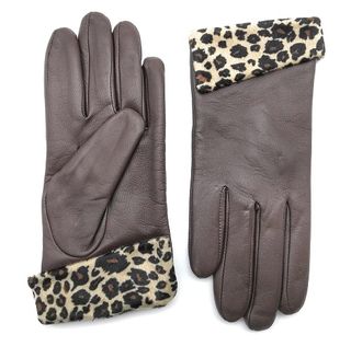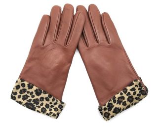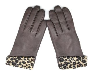 Elegantes guantes de piel para mujer con un toque animal print. - Material: Piel. - Tallas disponibles: 7, 7.5, 8. - Detalle de estampado de leopardo en el puño.
