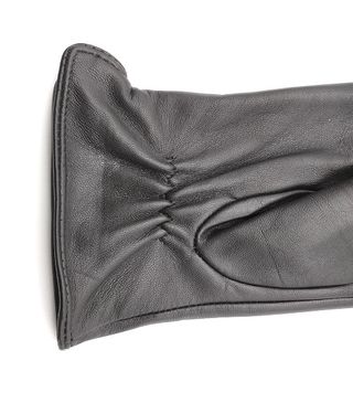 Elegantes guantes de piel para mujer. - Material exterior de cuero. - Forro interior de pelo suave. - Puño con detalle de pelo. - Costuras decorativas en el dorso.