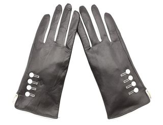 Elegantes guantes de piel para mujer, disponibles en varias tallas. - Marrón Oscuro o Negros - Material: Piel. - Diseño con botones decorativos. - Forro interior blanco.