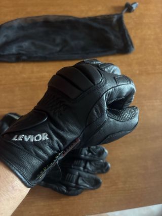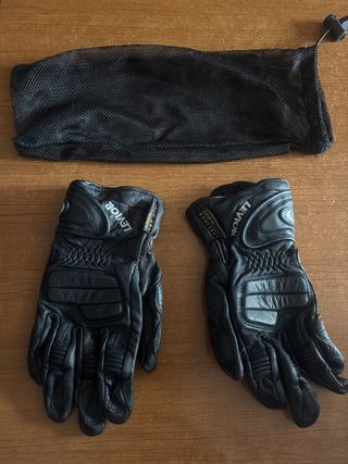 Par de guantes de moto para mujer de la marca Levior talla XS. Incluyen bolsa de malla para guardarlos. Totalmente nuevos. - Material de cuero. - Diseño acolchado en nudillos y dedos.