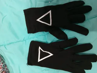 Par de guantes negros con diseño de triángulo blanco, inspirados en el disfraz de calamar. - Diseño de triángulo blanco. - Talla única.